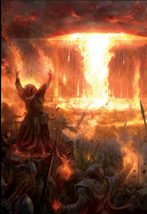 Les 100 mages humains invoquent une tempête de feu pour anéantir les trolls.
